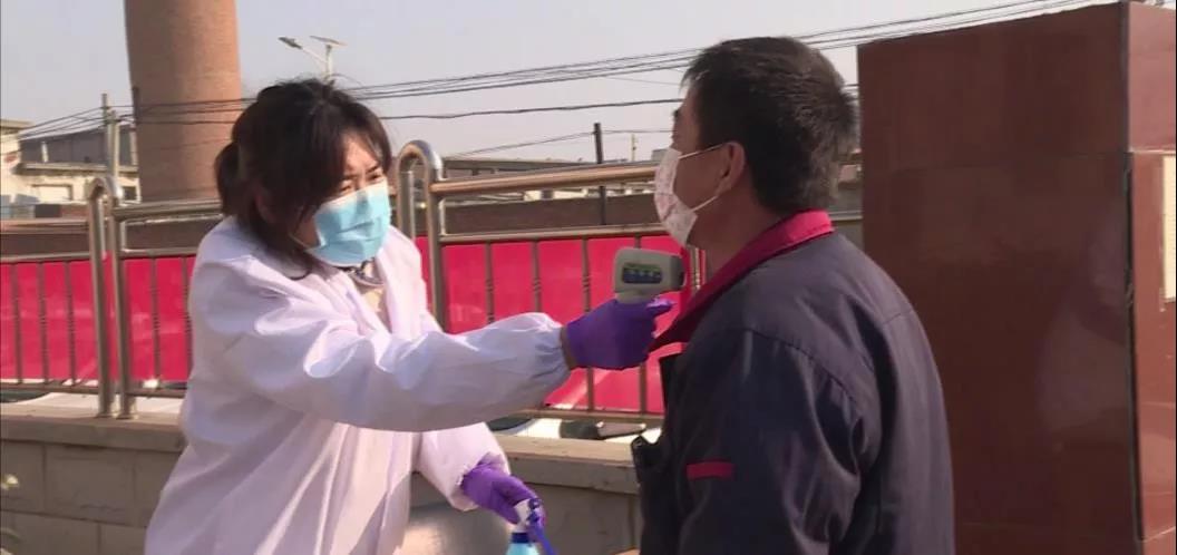 在煙臺茂源食品機械有限公司的大門口,公司安排了專門人員為進入廠區的工人進行體溫檢測,這是企業為切實防止人員流動和集聚帶來的交叉感染,有序做好企業復工后疫情防控工作的一項具體舉措。