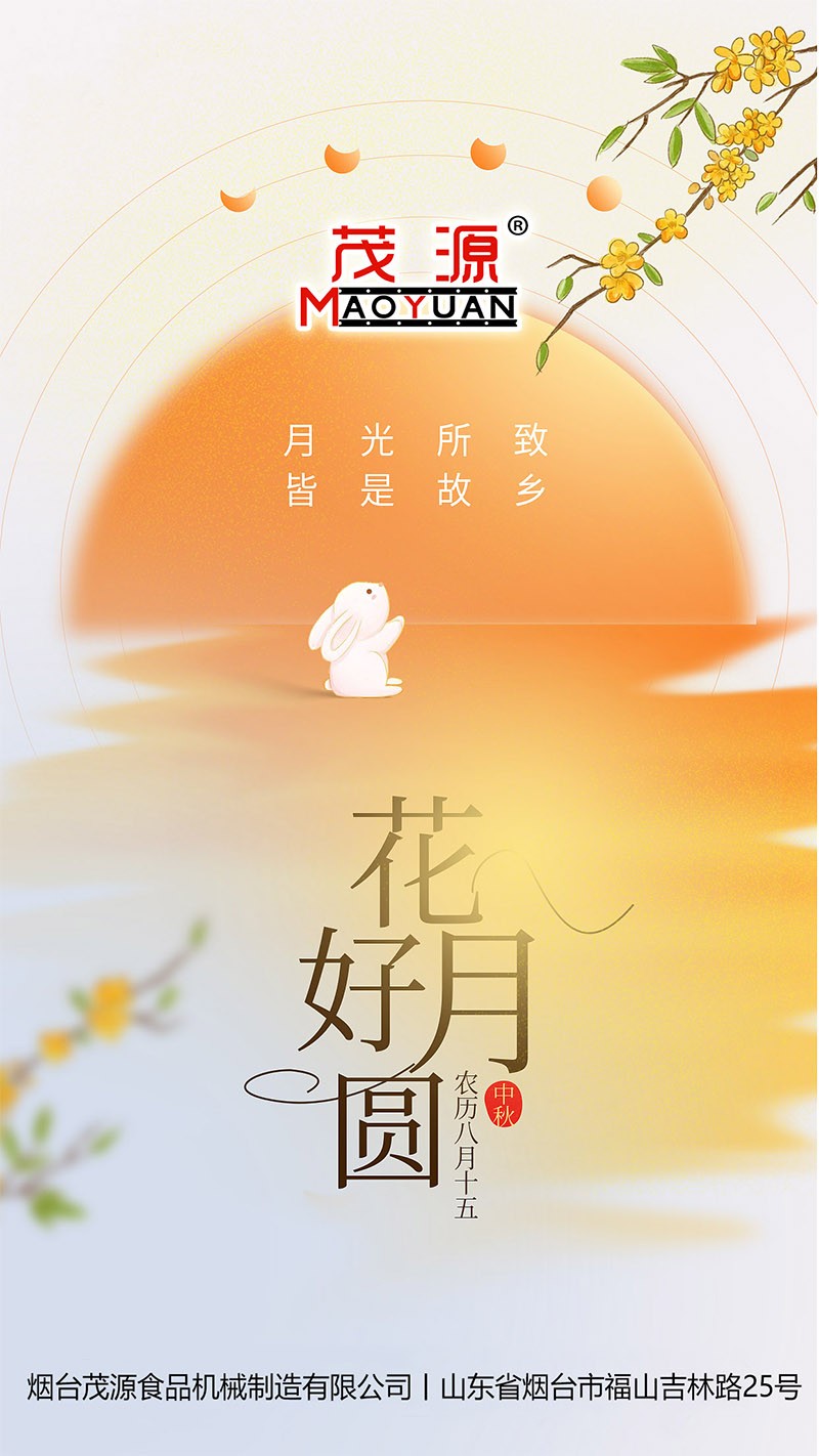 明月寄相思,佳節(jié)慶團(tuán)圓。在這個溫馨滿溢的中秋佳節(jié),煙臺茂源食品機(jī)械向您致以最誠摯的祝福!