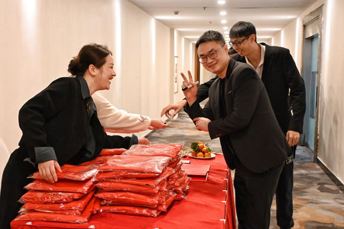 簽到儀式就像一場(chǎng)奇妙的聚會(huì)開(kāi)場(chǎng)秀,每個(gè)人的名字在那一刻就像星星被點(diǎn)亮。大家排著隊(duì),一邊和同事歡樂(lè)打趣,一邊興奮的簽下自己的名字,并合影留念。共赴這場(chǎng)年度盛會(huì)。